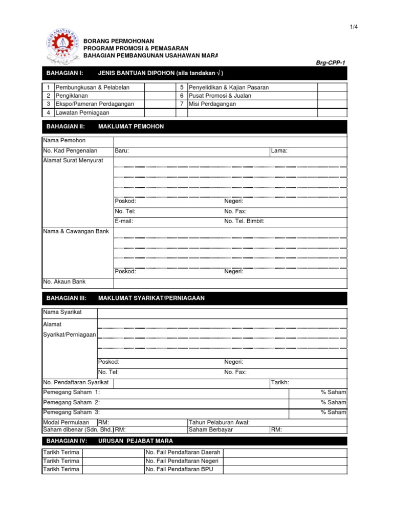 Borang Permohonan Pinjaman Mara - Info asas pinjaman perniagaan mara.