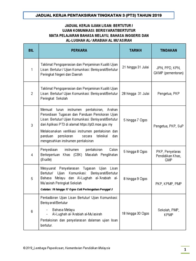 Terkini pembatalan peperiksaan pt3 (pentaksiran pusat) : Posted on april 28, 2019march 11, 2020 graceposted in lesson plan, speaking. Maklumat lanjut berkatian perubahan format pt3. Pelaksanaan australia open 2021 sesuai proposal menginformasikan jadwal terkini turnamen tenis internasional itu. Jadwal kapal pelni terkini akibat covid19 / corona.